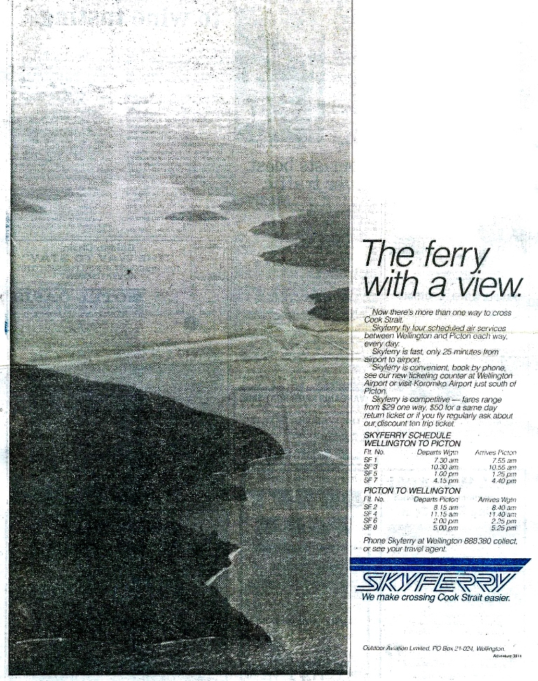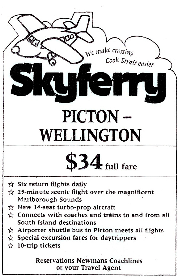 | Skyferry, "We make crossing Cook Strait easier" |