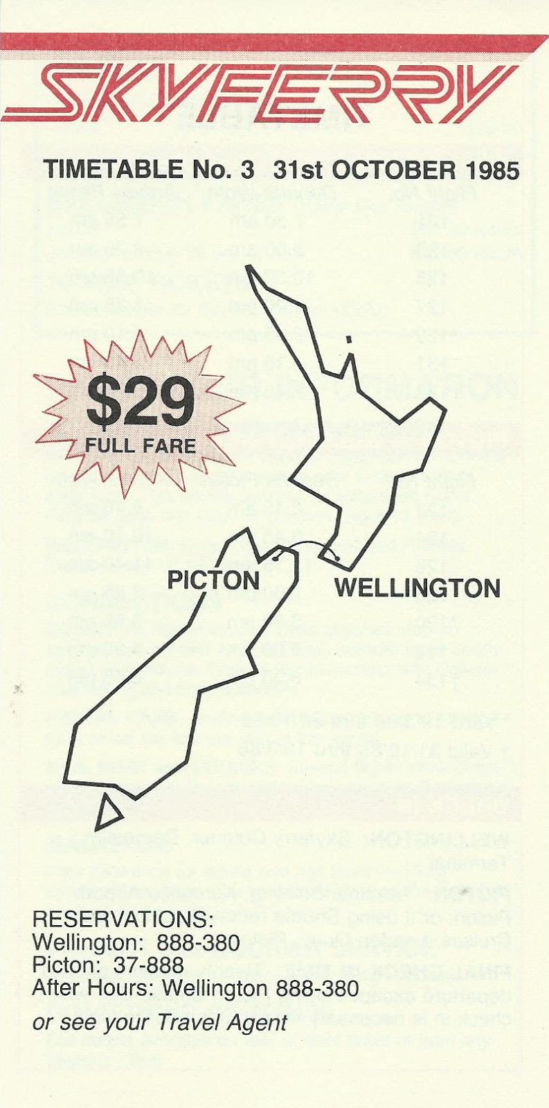 | Crossing Cook Strait six times a day for $29... the timetable effective 31 October 1985 |