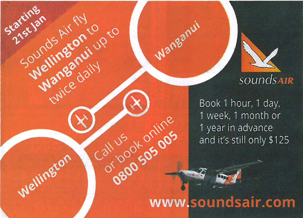 | Sounds Air advertising, 29 July 2025 |
