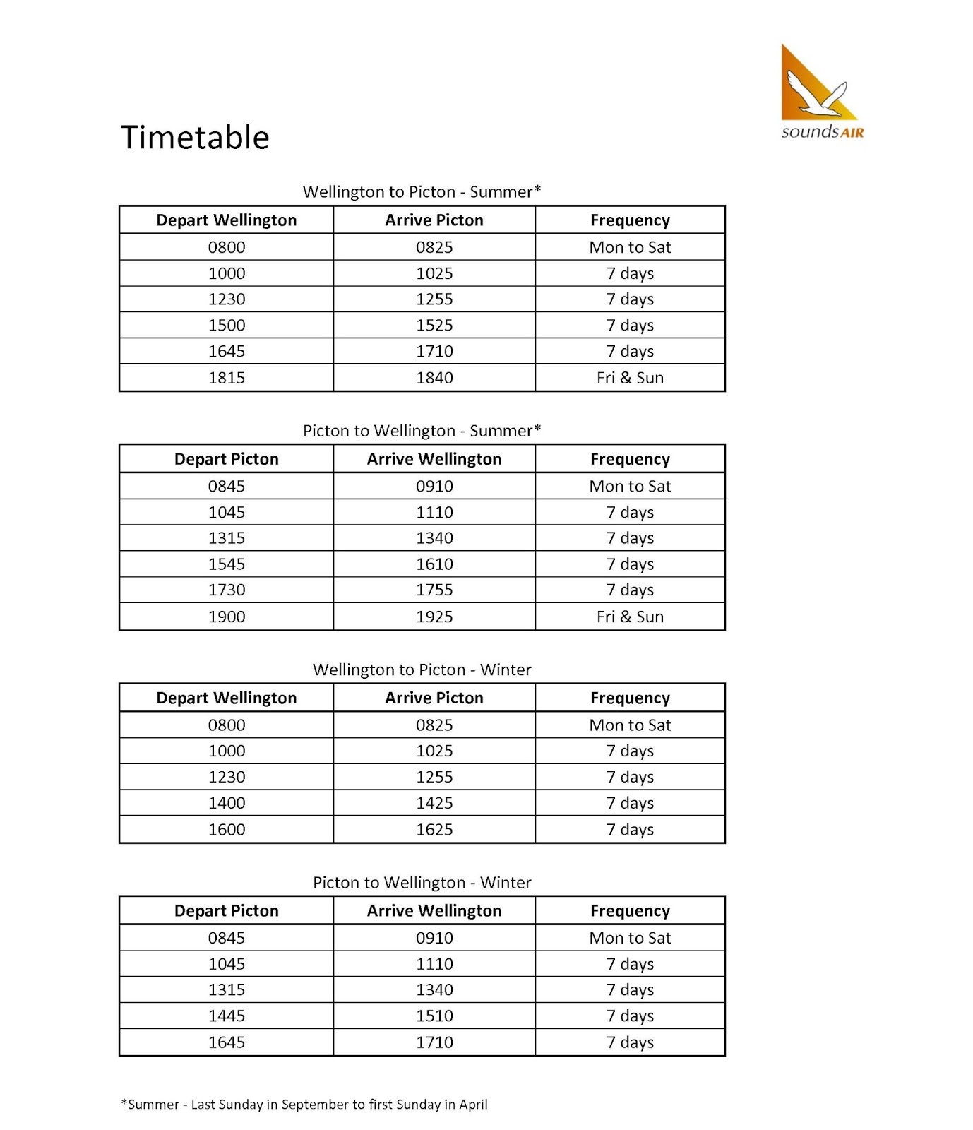 | The Sounds Air timetable effective 3 December 2013 |