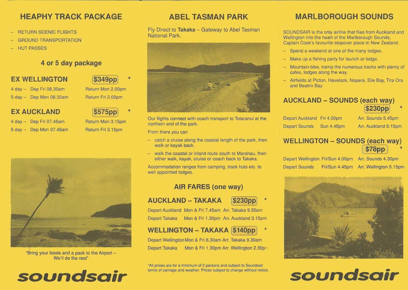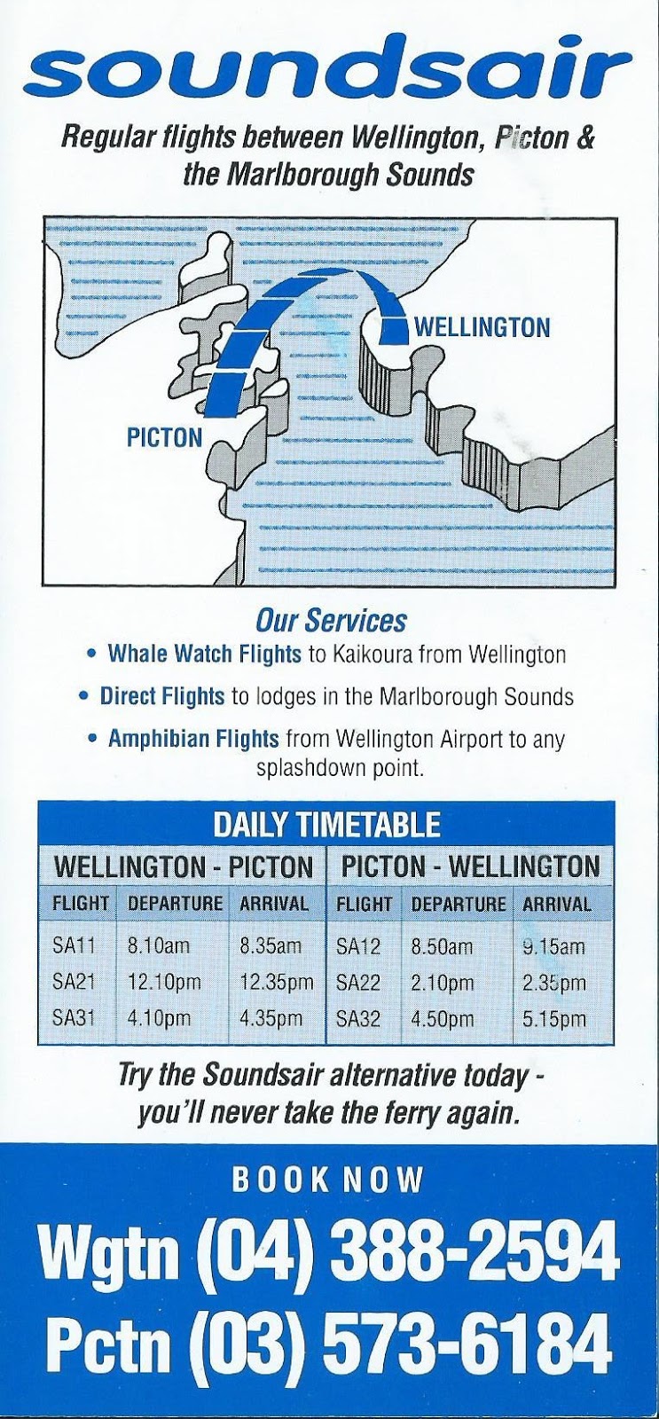 | Unfortunately the early Soundsair timetables weren't dated... but with only three flights across Cook Strait my guess is this is one of the early ones circa early 1992 |