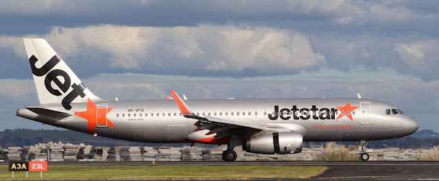 | Jetstar Airbus 320 VH-VFQ arriving into Auckland from Queenstown on 12 May 2024 |